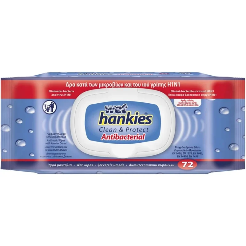 × Wet Hankies Υγρά Μαντίλια Antibacterial με Καπάκι 72τεμ Clean & Protect